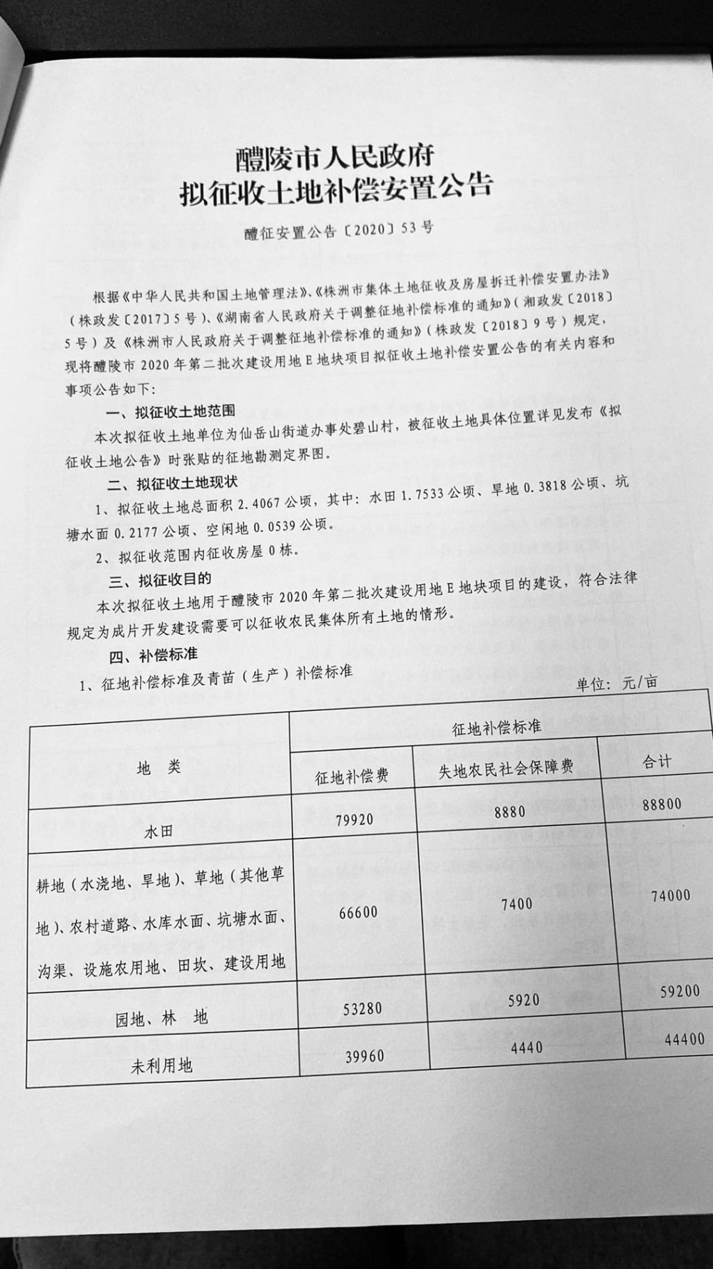 醴陵市人民政府拟征收土地补偿安置公告(醴陵市2020年第二批次建设用地E地块)