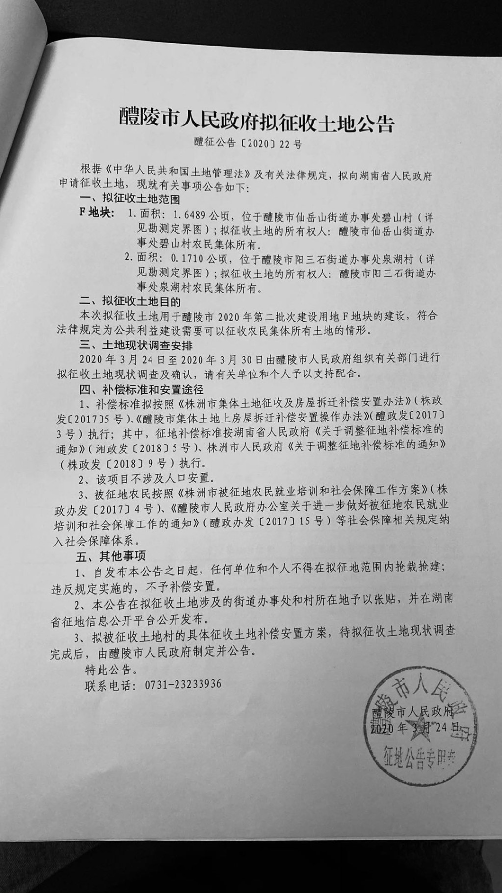 醴陵市人民政府拟征收土地公告(醴陵市2020年第二批次建设用地F地块)