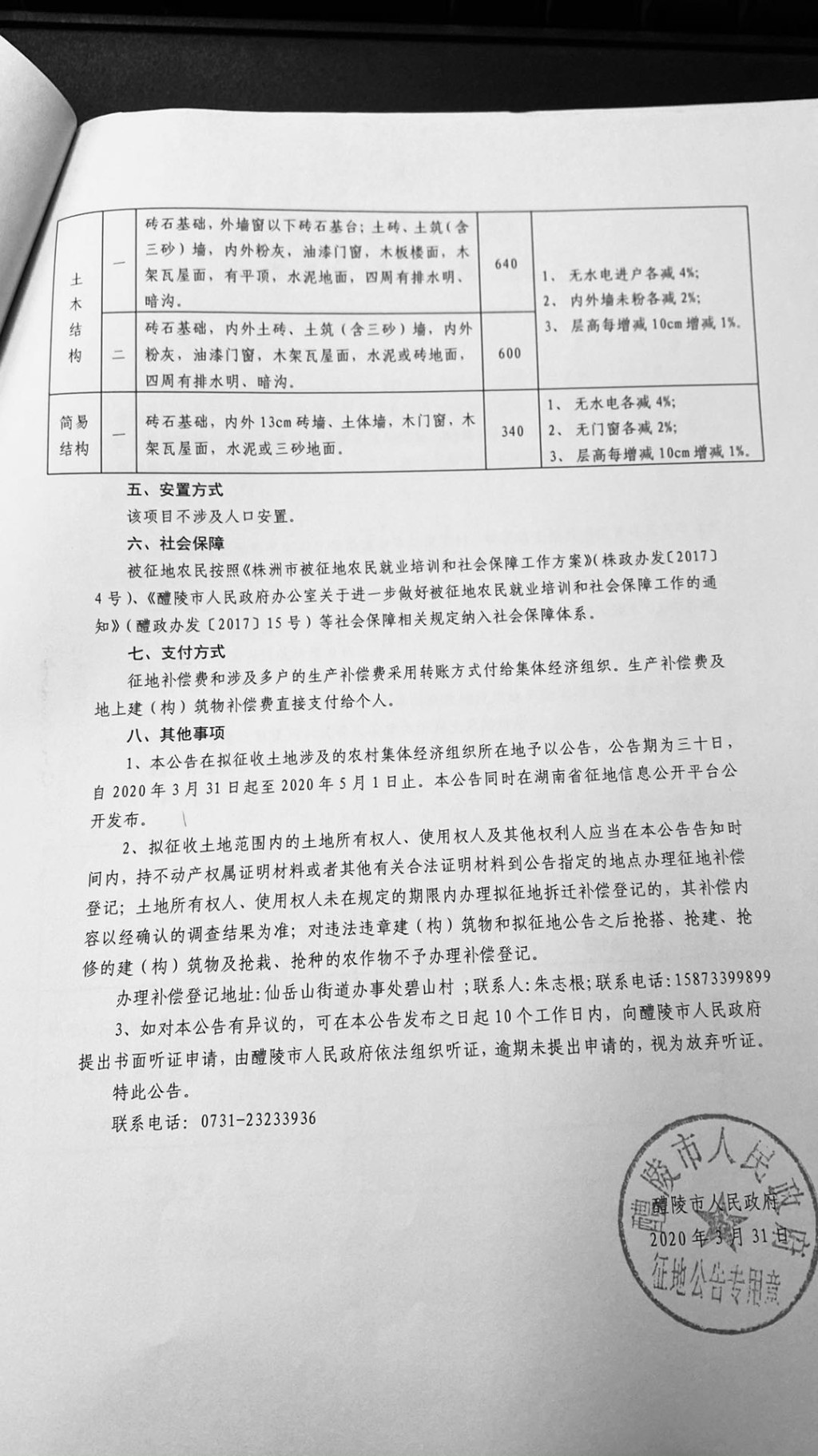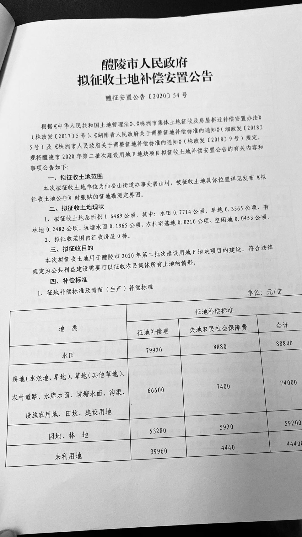 醴陵市人民政府拟征收土地补偿安置公告(醴陵市2020年第二批次建设用地F地块)