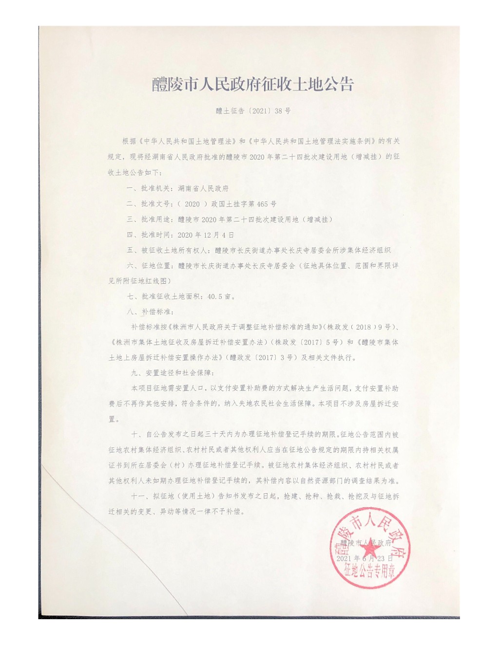 醴陵市人民政府征收土地公告(醴陵市2020年第二十四批次建设用地(增减挂)项目)