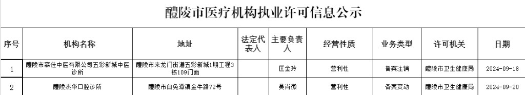 醴陵市医疗机构执业许可信息公示