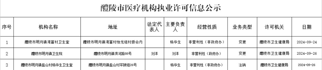 醴陵市医疗机构执业许可信息公示