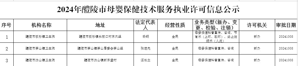 2024年醴陵市母婴保健技术服务执业许可信息公示