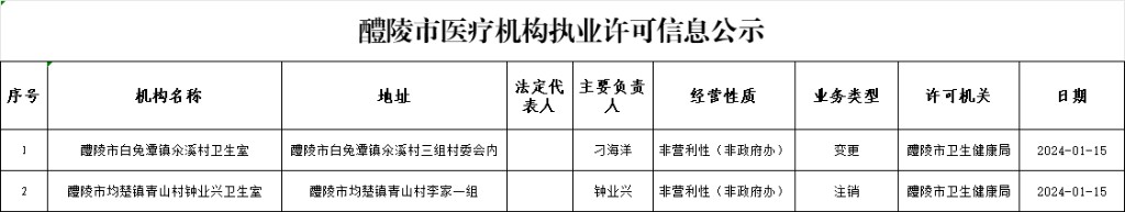 醴陵市医疗机构执业许可信息公示