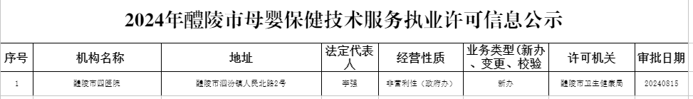母婴保健技术服务执业许可信息公示