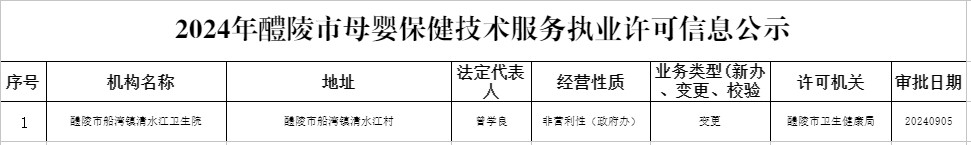 2024年醴陵市母婴保健技术服务执业许可信息公示
