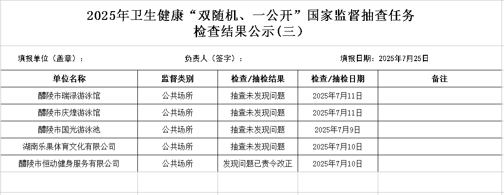 2025年卫生健康“双随机、一公开”国家监督抽查任务检查结果公示